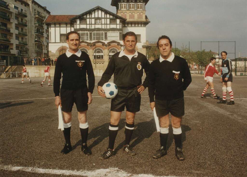 El trío arbitral en la zona deportiva