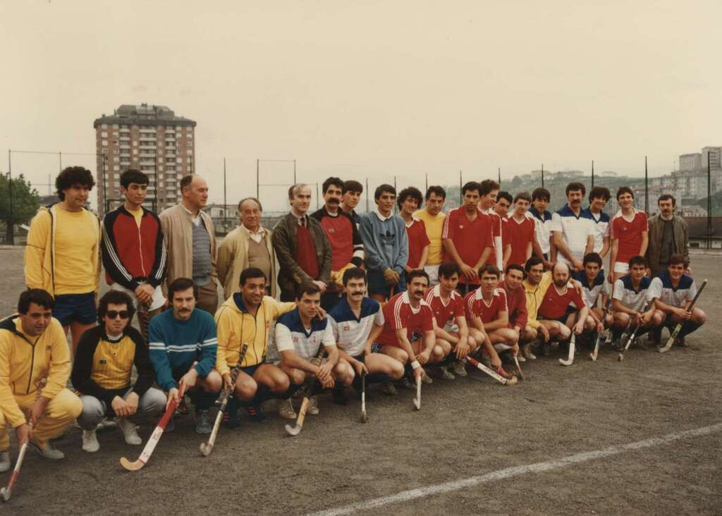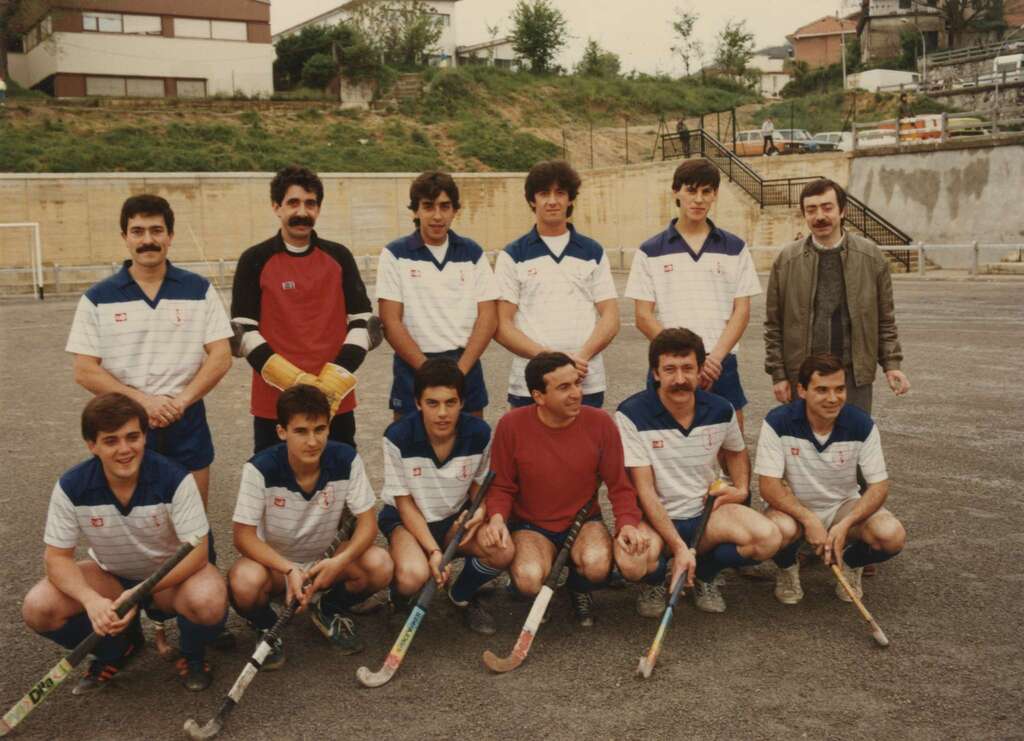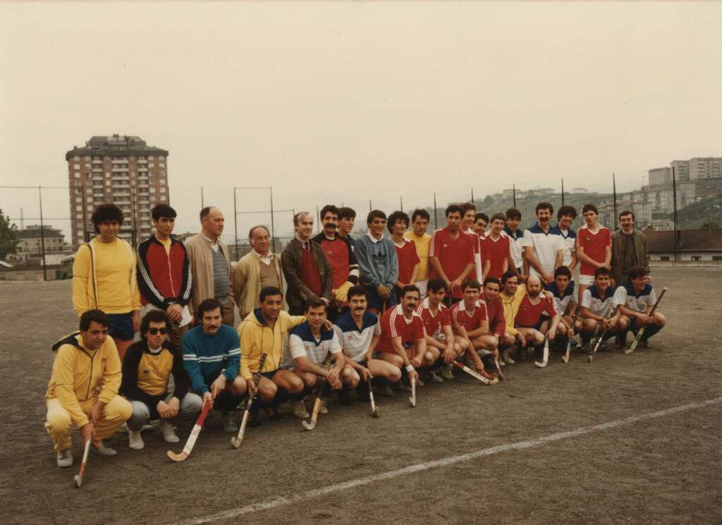 Equipo de hockey en la inauguración de la zona deportiva