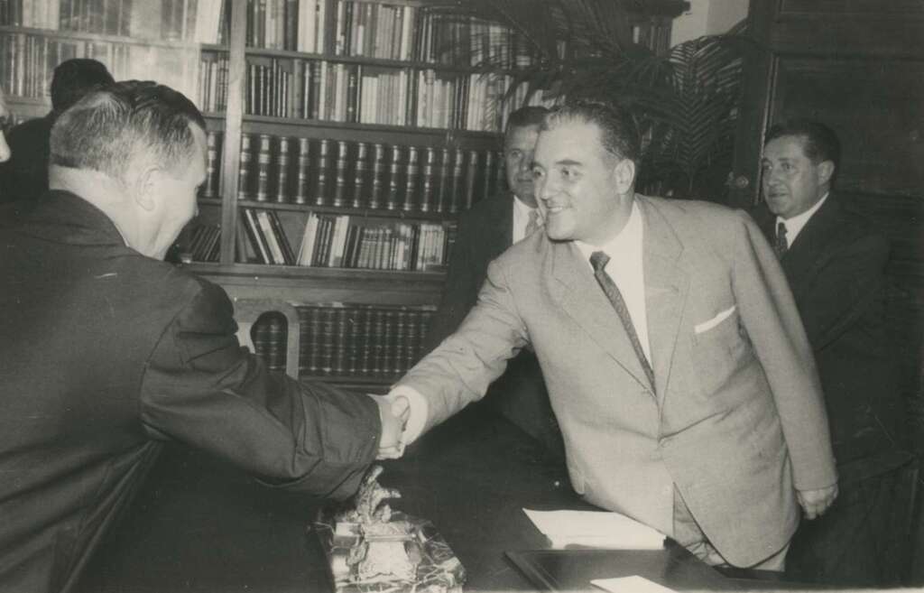 Homenaje a Morales Oliver. El Gobernador Civil de Gipuzkoa, Manuel Valencia Remón en el acto de homenaje