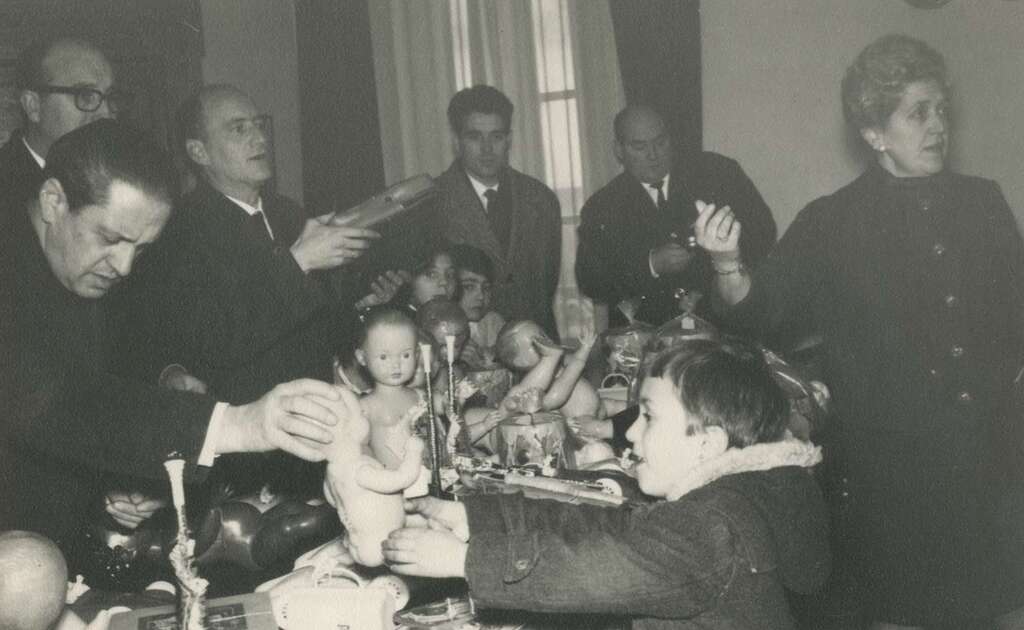 Entrega de regalos a los niños en Navidades de 1963-1964