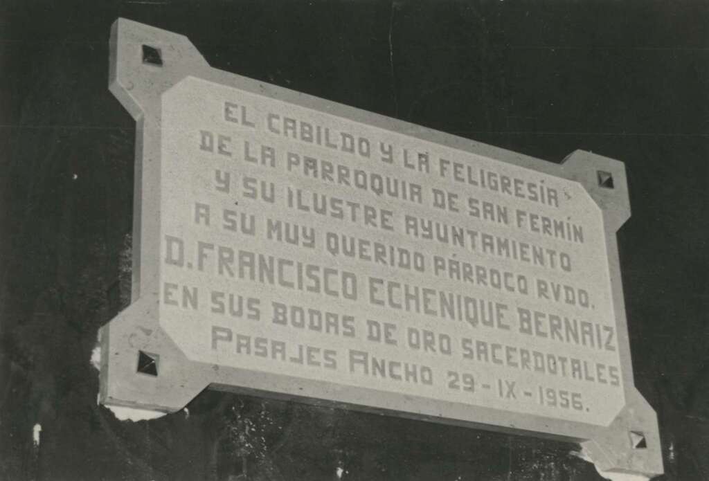 Placa conmemorativa de las Bodas de oro del párroco de Pasai Antxo, Francisco Echenique