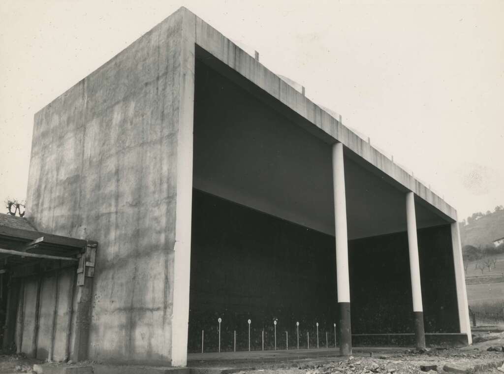 Paredes frontal y lateral del frontón cubierto de Trintxerpe
