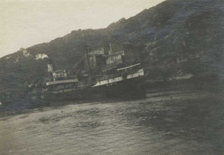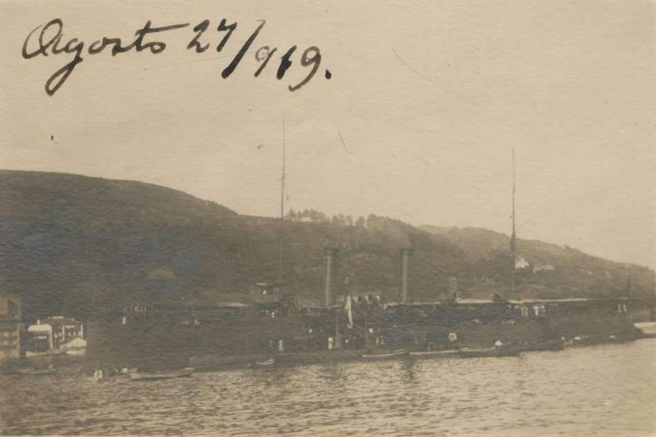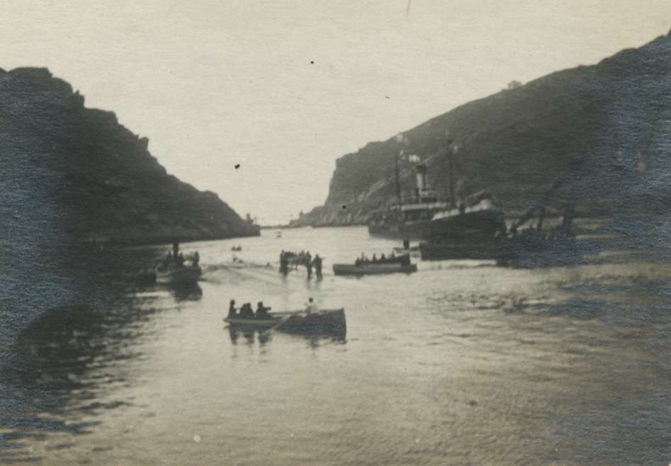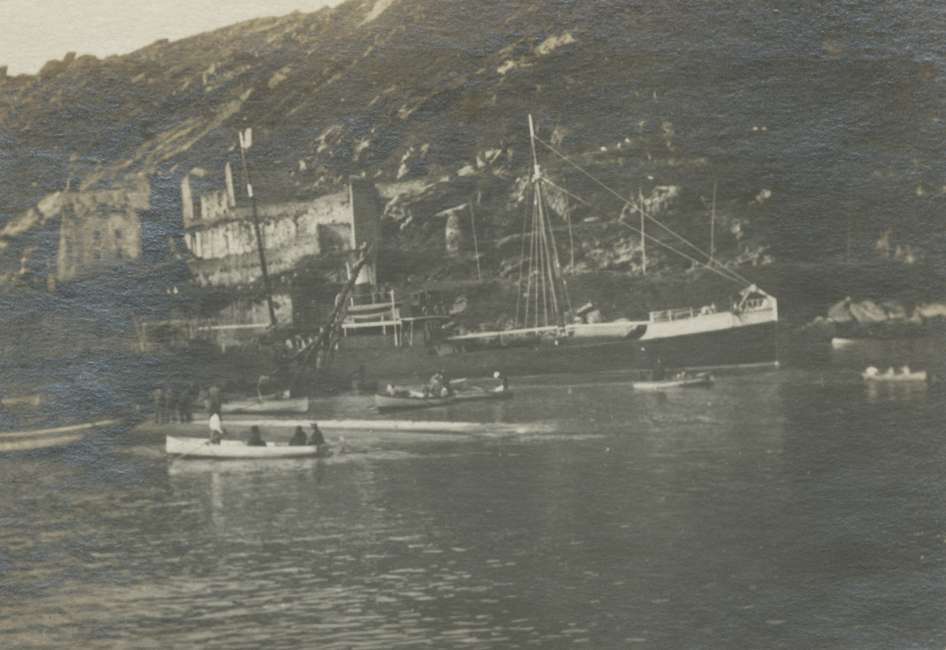 Barco entrando al puerto, a su paso por el Castillo de Santa Isabel