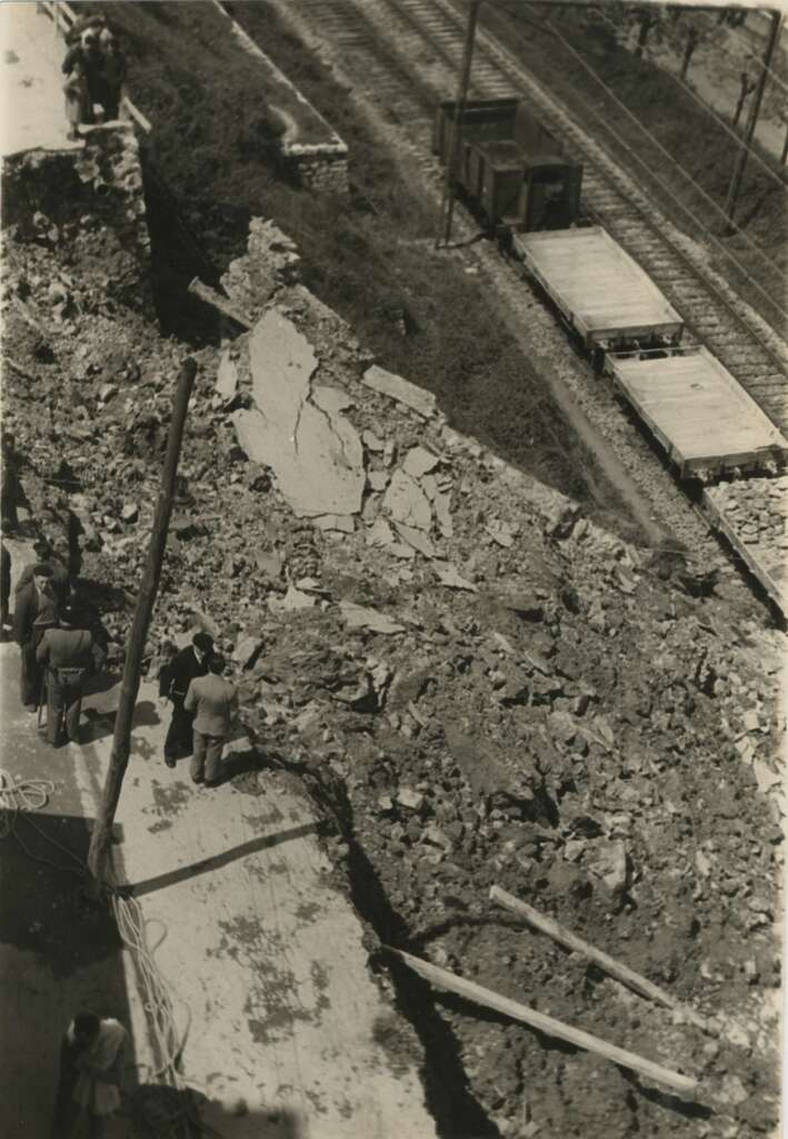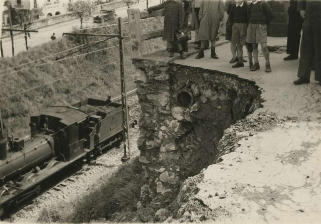 Desprendimiento de la carretera del Alto de Buenavista vista desde las vías de la Renfe (antes avenida de Ignacio de Casares)