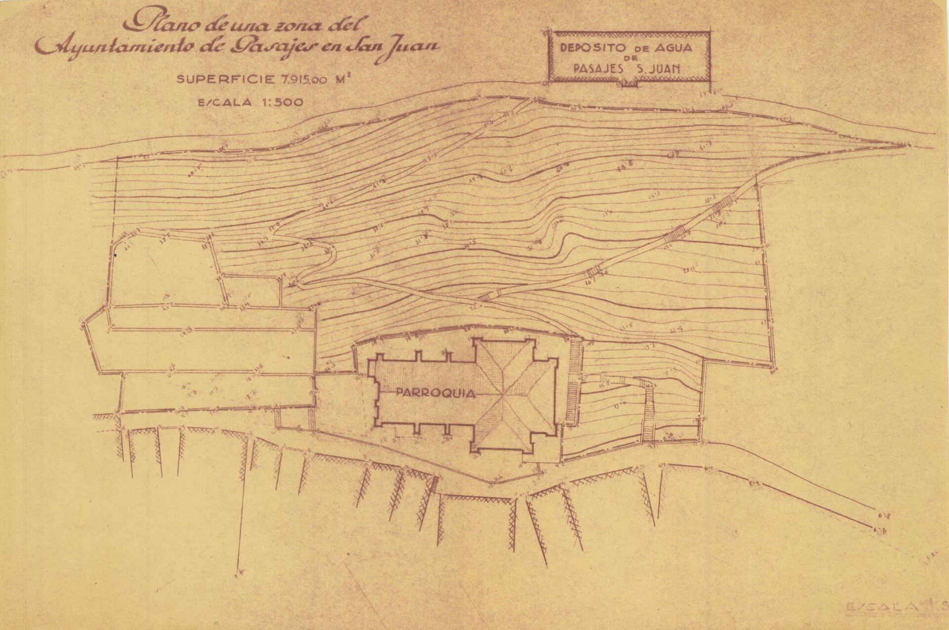 Pasai Donibaneko parrokiaaren atzealdeko gunearen planoa.