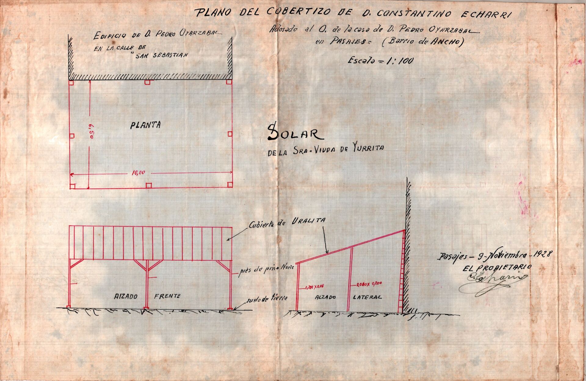 San Sebastián kalean estalpea eraikitzea